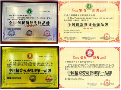 2014年10月,由中國(guó)產(chǎn)品質(zhì)量技術(shù)監(jiān)督中心與全國(guó)優(yōu)質(zhì)品牌戰(zhàn)略推廣聯(lián)合會(huì)共同舉辦的“2014年跨世紀(jì)——中國(guó)產(chǎn)品與品牌”發(fā)布大會(huì)在廣州隆重舉行。本次大會(huì)在社會(huì)和企業(yè)界具有廣泛影響,相關(guān)出席的領(lǐng)導(dǎo)和中國(guó)產(chǎn)品質(zhì)量技術(shù)監(jiān)督中心、全國(guó)優(yōu)質(zhì)品牌戰(zhàn)略推廣聯(lián)合會(huì)會(huì)長(zhǎng)現(xiàn)場(chǎng)頒發(fā)了證書及牌匾,充分表現(xiàn)了對(duì)企業(yè)的親切關(guān)懷和支持。經(jīng)會(huì)議的嚴(yán)格審核與評(píng)比,廣州紅海網(wǎng)絡(luò)科技開(kāi)發(fā)有限公司一舉獲得了《中國(guó)精益勞動(dòng)管理第一品牌》及《2014年度全國(guó)創(chuàng)新領(lǐng)導(dǎo)先鋒品牌》二項(xiàng)榮譽(yù)稱號(hào),特此祝賀。