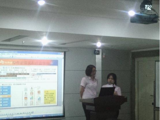 集團(tuán)人事事務(wù)服務(wù)中心質(zhì)控部周敏青副經(jīng)理與長(zhǎng)沙數(shù)據(jù)員康晶