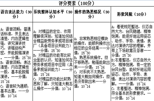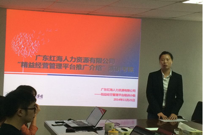 這次的演講考核分為兩大塊,首先是廣東紅海的員工逐一對(duì)“精益化經(jīng)營(yíng)管理平臺(tái)”的認(rèn)知理解做一個(gè)推廣演講,然后是操作考官指定該系統(tǒng)的任一模塊。