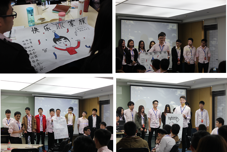 團(tuán)隊(duì)的建設(shè)需要小組成員集思廣益,出謀劃策,共同構(gòu)思團(tuán)隊(duì)名稱、口號(hào)。在這個(gè)過程中,小組成員個(gè)個(gè)使出渾身解數(shù),有的成員分享自己的靈思妙想,有的成員獻(xiàn)丑自己的畫工,有的成員發(fā)揮自己的口才。也正是這樣的培訓(xùn)過程,讓順豐項(xiàng)目的同事發(fā)現(xiàn)他人的閃光點(diǎn),也重新認(rèn)識(shí)了自己。