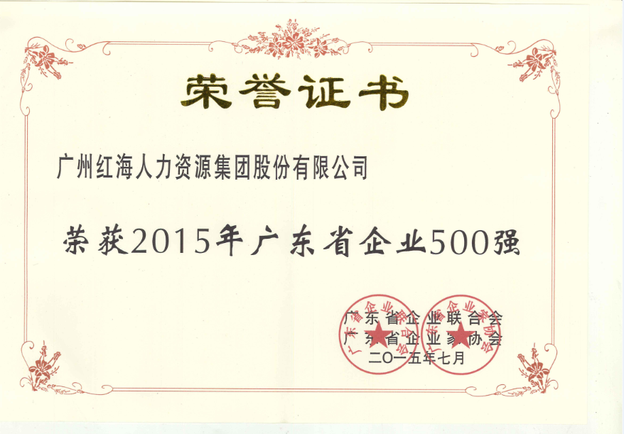 廣州紅海人力資源集團(tuán)股份有限公司榜上有名,被列入廣東省500強(qiáng)企業(yè)中排行242位,在服務(wù)業(yè)100強(qiáng)中排名49位。從2015年廣東企業(yè)500強(qiáng)的情況可以看到,在新常態(tài)經(jīng)濟(jì)形勢下,雖然面臨經(jīng)濟(jì)下行的壓力,但我省產(chǎn)業(yè)轉(zhuǎn)型升級取得了明顯效果,廣東大型骨干企業(yè)在省委、省政府的政策扶持下,大力實(shí)施創(chuàng)新驅(qū)動發(fā)展戰(zhàn)略,相互促進(jìn),實(shí)現(xiàn)了快速發(fā)展,發(fā)展質(zhì)量和效益都有了較大提高,對廣東經(jīng)濟(jì)起到了良好的帶動和幅射作用。廣東大型骨干企業(yè)的快速發(fā)展,為廣東省連續(xù)26年位居全國經(jīng)濟(jì)第一大省起到了重要作用。而集團(tuán)再次榜上有名,再一次證明了紅海的實(shí)力和紅海服務(wù)的宗旨:創(chuàng)造客戶,全心全意為客戶服務(wù),紅海服務(wù)做得比您要求的更好。