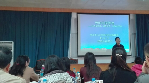 (惠州市人社局勞動(dòng)關(guān)系科楊科長(zhǎng)進(jìn)行勞動(dòng)合同管理的培訓(xùn))