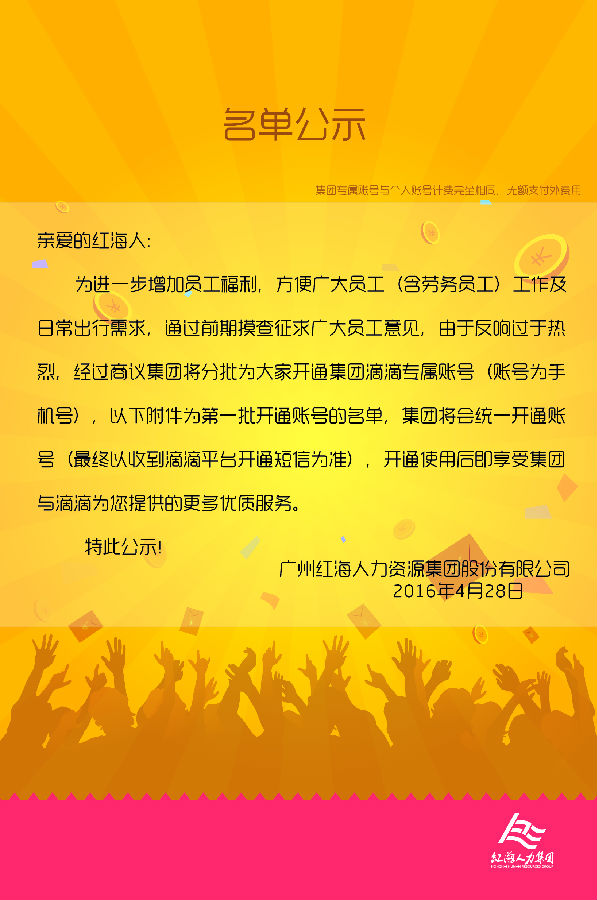 首批開(kāi)通滴滴企業(yè)賬號(hào)人員名單公示