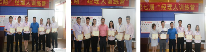 有這樣一個在訓練營無私奉獻,盡職服務的團隊——班委,由班長李川,學習委員兼組長張海龍,生活委員殷紅,宣傳委員唐靖平、譚素英,文體委員兼連長鄭振堅,組長韋流武,組長肖敏共8名成員組成 。為了感謝班委們的辛勤付出,特別設立了“班委突出貢獻獎”,并盛情邀請劉萬春總經理為各班委頒獎發(fā)榮譽證書及獎品。
