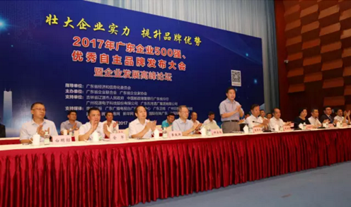 2017 年8 月3 日,廣東企業(yè)500強(qiáng)、廣東省優(yōu)秀自主品牌發(fā)布大會(huì)暨企業(yè)發(fā)展高峰論壇在廣州白云國(guó)際會(huì)議中心舉行。