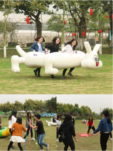 驅(qū)車1小時,紅海女神們到達花都香草世界。集團工會首先組織了一場別開生面的趣味運動會。大家分為8組,以接力賽的形式,進行坐騎賽跑、不倒森林、鼓舞飛揚3個活動項目。