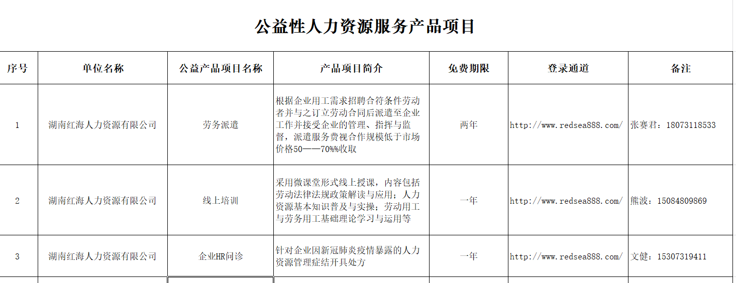 湖南紅海公益性人力資源服務(wù)項(xiàng)目