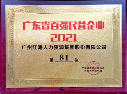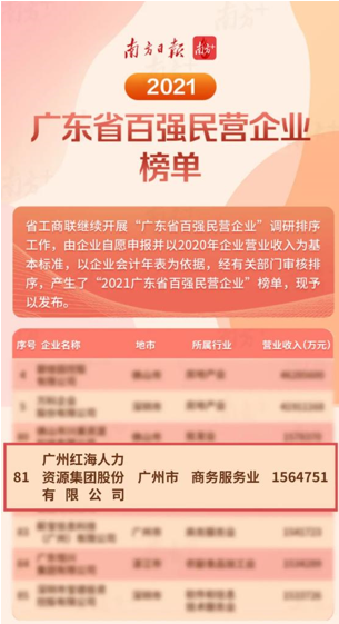 紅海人力集團(tuán)連續(xù)三年榮登 “廣東省百?gòu)?qiáng)民營(yíng)企業(yè)”榜單