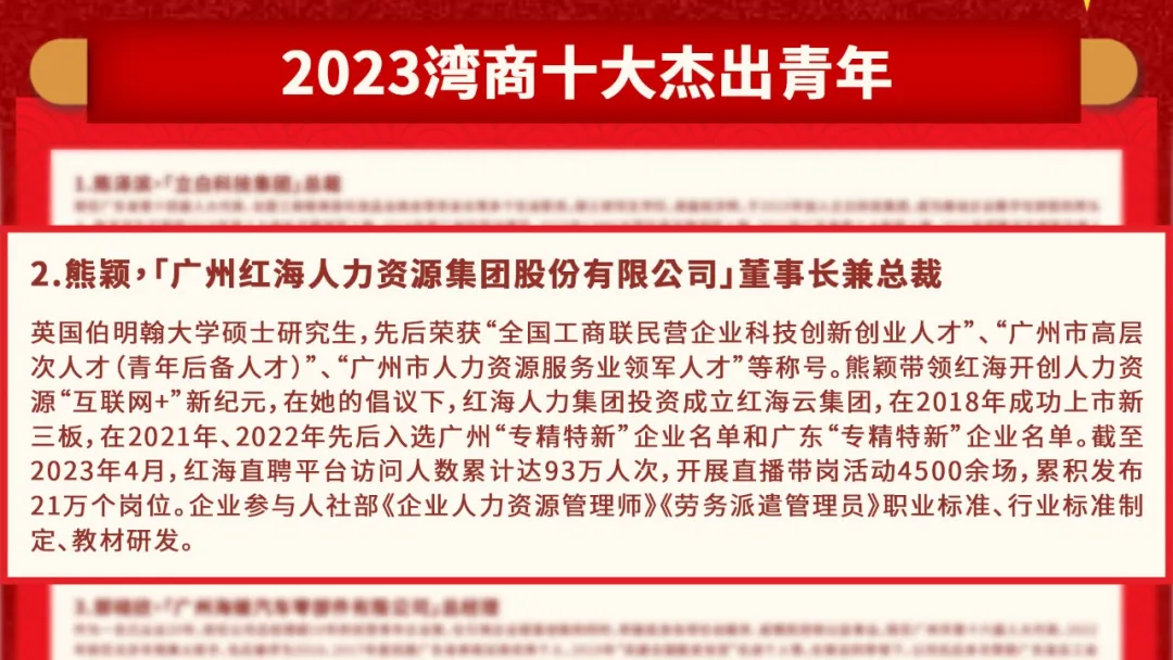 喜訊!紅海人力董事長(zhǎng)熊穎榮獲“2023灣商十大杰出青年”稱號(hào)