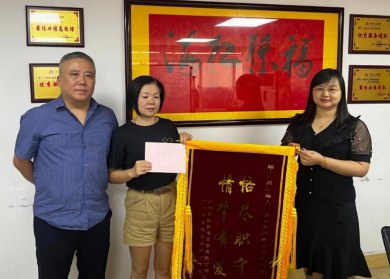 同時(shí),客戶單位領(lǐng)導(dǎo)康總特意蒞臨紅海靈活用工服務(wù)事業(yè)部,向事業(yè)部代表金卓珊總經(jīng)理與先進(jìn)員工鐘小妃同志贈(zèng)送“恪盡職守,情摯有愛(ài)”錦旗與手寫(xiě)感謝信,感謝事業(yè)部對(duì)勞務(wù)員工職業(yè)責(zé)任感的管理與培養(yǎng)。