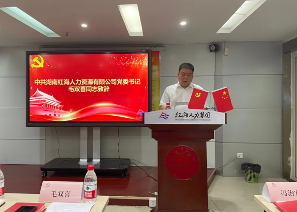 本次活動在中共湖南紅海人力資源有限公司黨委書記毛雙喜同志的致辭中拉開序幕,作為產(chǎn)值超40億元的人力資源行業(yè)數(shù)字化踐行者,湖南紅海的每一步前進(jìn),都離不開中國共產(chǎn)黨的引領(lǐng)。