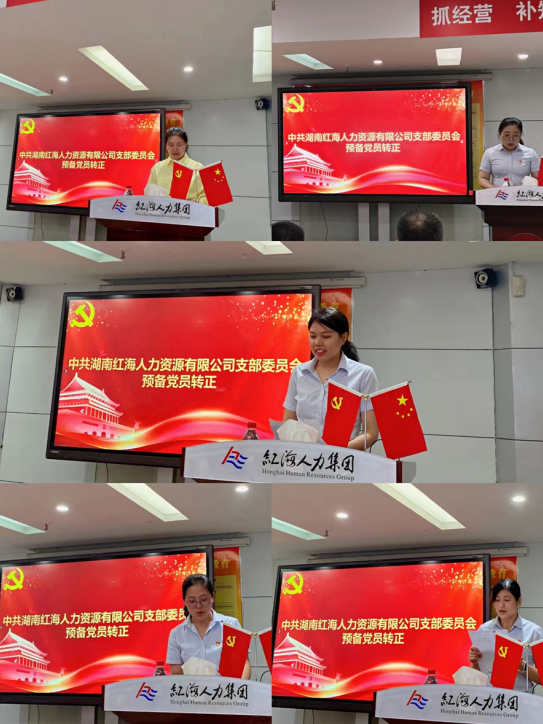 隨后,中共湖南紅海人力資源有限公司委員會召開黨員大會討論預(yù)備黨員轉(zhuǎn)正事宜。湖南紅海本次共有五名預(yù)備黨員在“七一”建黨節(jié)這一天成為一名正式的中國共產(chǎn)黨黨員。