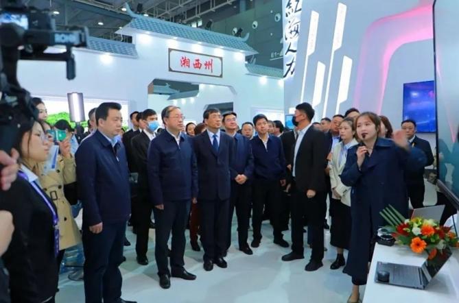 (中國人社部黨組成員、副部長俞家棟,湖南省人民政府黨組成員、副省長秦國文,湖南省人力資源和社會保障廳黨組書記、廳長李永軍領(lǐng)導一行蒞臨紅海人力集團展臺)