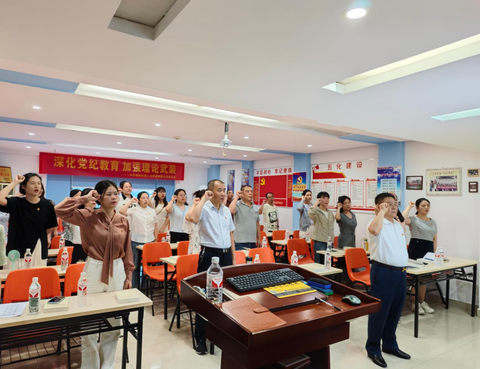 全體黨員在湖南紅海培訓室重溫入黨誓詞