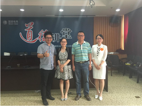 湘潭紅海培訓(xùn)負(fù)責(zé)人項(xiàng)斌(左一)湘鄉(xiāng)電力局局領(lǐng)導(dǎo)(左二、三)講師(右一)