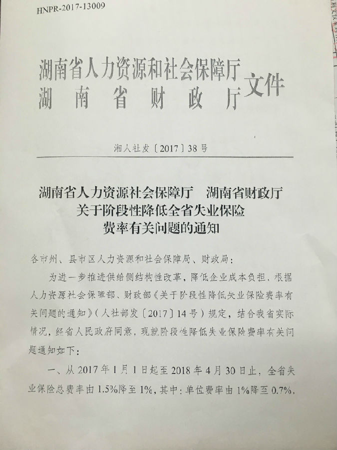 關(guān)于階段性降低全省失業(yè)保險(xiǎn)費(fèi)率有關(guān)問題的通知