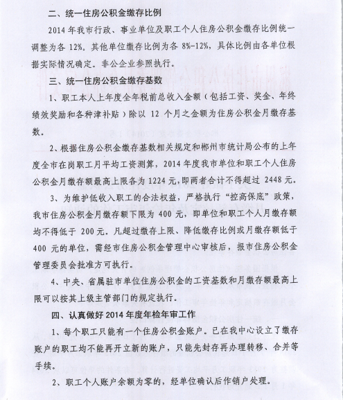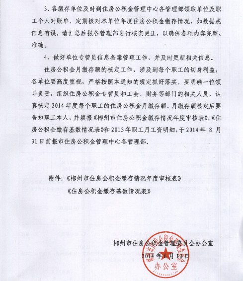 2014年度郴州市住房公積金月繳存額核定及年檢年審工作的通知