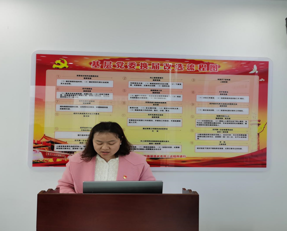 會議在莊嚴的國歌聲中拉開帷幕。上屆黨支部副書記秦芳梅同志代表上屆支部委員會作工作報告,全面回顧總結(jié)上一屆黨支部在黨員管理、從嚴治黨、主題教育、文明創(chuàng)建、廉政建設(shè)等方面的工作成果,分析了過去工作中存在的不足,并對下一屆黨支部工作提出建議。