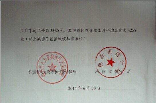 株洲市關(guān)于發(fā)布2013年全省和全市在崗職工平均工資的通知