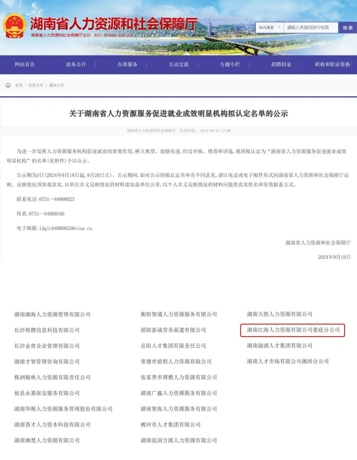 公示名單中獲此殊榮的機構(gòu)共22家,其中婁底市占2席。湖南紅海人力資源有限公司婁底分公司很榮幸地被擬認(rèn)定為“湖南省人力資源服務(wù)促進就業(yè)成效明顯機構(gòu)”。