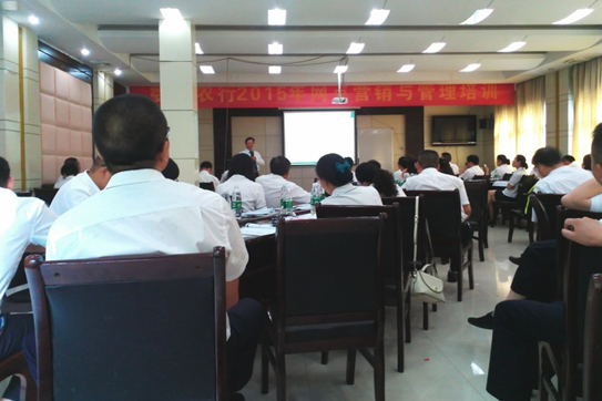 湖南紅海婁底分公司在培訓(xùn)前期與婁底農(nóng)行培訓(xùn)部鄧總做了充分溝通工作,并根據(jù)客戶單位的要求,為農(nóng)行量身打造了符合他們此次培訓(xùn)的方案。第一天的培訓(xùn)是農(nóng)行自己內(nèi)部講師對(duì)網(wǎng)點(diǎn)負(fù)責(zé)人進(jìn)行系統(tǒng)的專業(yè)理論培訓(xùn)。晚上活動(dòng)由婁底紅海全程進(jìn)行策劃、安排。讓所有網(wǎng)點(diǎn)負(fù)責(zé)人在平日緊張的工作中放松自己的情緒,調(diào)動(dòng)起來(lái)積極參與晚上的活動(dòng)。