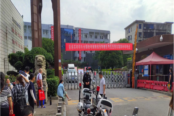6月7日清晨,在岳陽(yáng)第四中學(xué)高考考點(diǎn)外,岳陽(yáng)紅海志愿者早早來(lái)到現(xiàn)場(chǎng),等候考生們的到來(lái)。