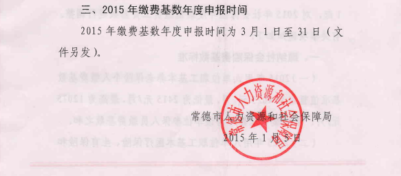 關(guān)于調(diào)整2015年度常德市社會保險最低繳費工資基數(shù)等有關(guān)問題的通知