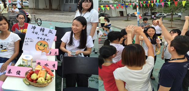 比賽正式開始,第一輪是“闖關勇士”環(huán)節(jié),是每隊伍展示實力的時刻到了,總共有4輪的游戲關卡,分別有袋鼠跳、龍戲珠、背水一戰(zhàn)與比翼雙飛,游戲必須以最短的時間來完成,沖鋒隊最終以1分31秒的成績獲得第二。