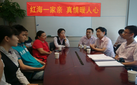 2014年9月3日下午,廣州紅海人力資源集團(tuán)股份有限公司天河分公司領(lǐng)導(dǎo)班子,首先來(lái)到客戶單位公誠(chéng)設(shè)備資產(chǎn)服務(wù)有限公司電信廣場(chǎng)事業(yè)部走訪關(guān)愛新入職在服務(wù)一線員工。在走訪關(guān)愛中,天河分公司班子成員以及項(xiàng)目負(fù)責(zé)人與在服務(wù)一線的員工們親切交談,詳細(xì)的詢問(wèn)各個(gè)部門的工作崗位面臨著什么樣的問(wèn)題?生活存在什么樣的困難,工作中如何盡快適應(yīng)環(huán)境,服從管理,技能上如何盡快上手,做一個(gè)愛崗敬業(yè)的好員工等等。黃丹總經(jīng)理還鼓勵(lì)員工:“感謝你們,我們同是紅海人,攜手共同為紅海公司發(fā)展做出貢獻(xiàn)”同時(shí),對(duì)員工們積極的工作態(tài)度表示充分肯定。