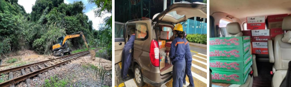 持續(xù)強降雨加上水庫泄洪,積水內(nèi)澇嚴(yán)重,有的項目部如利用挖掘機疏通下水管道,協(xié)助搶修;有的項目部則因各線各班人員到崗困難,但夜班員工仍然選擇留崗堅守,我們的管理人員則身先士卒,第一時間運送物資慰問,并親自接送員工進出,以確保安全。