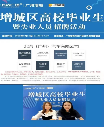2022年8月27日,由增城區(qū)人力資源和社會保障局、廣州增城萬達廣場委托紅海人力集團增城分公司舉辦的“增城區(qū)高校畢業(yè)生暨失業(yè)人員招聘活動”順利在增城萬達廣場舉行。