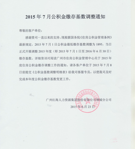 2015年7月公積金繳存基數(shù)調(diào)整通知