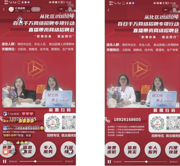 由廣州市從化區(qū)人力資源和社會保障局主辦,廣州市從化區(qū)勞動就業(yè)服務(wù)管理中心承辦,廣州紅海人力資源集團(tuán)股份有限公司從化分公司協(xié)辦,于2022年5月27日在廣州市從化區(qū)人力資源和社會保障局舉辦廣州市從化區(qū)2022年“百日千萬網(wǎng)絡(luò)招聘專項行動”直播帶崗網(wǎng)絡(luò)招聘會,為勞動者和用人單位提供優(yōu)質(zhì)高效服務(wù),為廣大求職者“足不出戶”,實現(xiàn)“碼上就業(yè)”。
