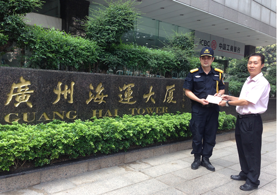 廣州鴻易公司外派員工勞定宜(廣州海運(yùn)集團(tuán)物業(yè)發(fā)展有限公司保安員)在8月份的一次值勤中,在履行職責(zé)時被人打傷,事件發(fā)生后,該員工能冷靜對待,并采取有效方法進(jìn)行處理,維護(hù)了客戶單位和紅海的聲譽(yù),得到客戶單位的好評。經(jīng)公司研究決定,給予該員工獎勵500元。