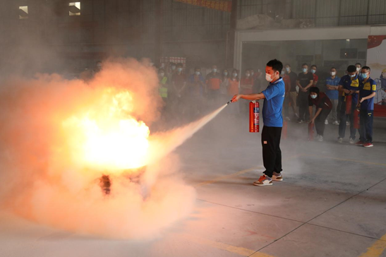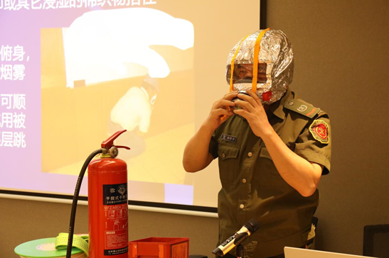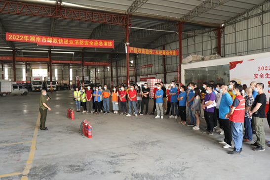 消防局專家現場講解 、指導快遞企業(yè)員工正確使用干粉滅火器滅火、如何在火場逃生等消防知識