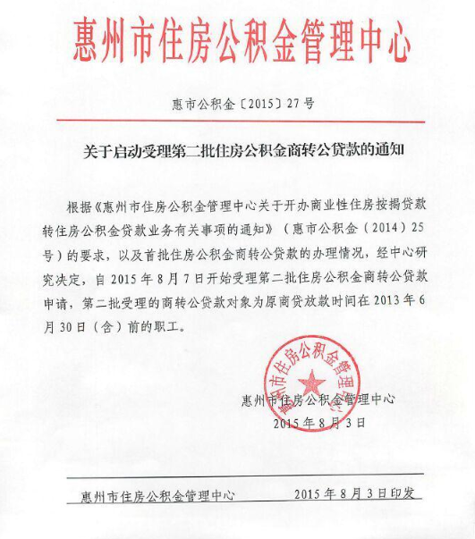 關(guān)于啟動受理第二批住房公積金商轉(zhuǎn)公貸款的通知