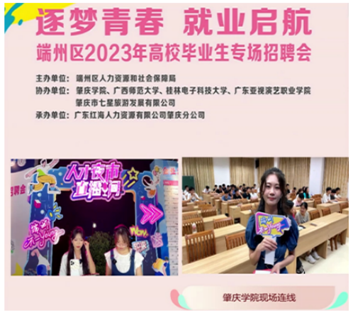 本次招聘會(huì)聯(lián)動(dòng)肇慶學(xué)院、廣西師范大學(xué)、廣東亞視演藝職業(yè)學(xué)院和桂林電子科技大學(xué)合共四間大學(xué)作為本次招聘會(huì)的分會(huì)場(chǎng),通過與各院校現(xiàn)場(chǎng)連線的方式,不僅吸引了大批學(xué)生進(jìn)入直播間觀看招聘會(huì),這種讓學(xué)生和企業(yè)代表通過直播間實(shí)現(xiàn)實(shí)時(shí)畫面?zhèn)魉停秸Z音的零距離溝通,不僅增加了互動(dòng)性,也拉近了企業(yè)和求職者之間的距離。