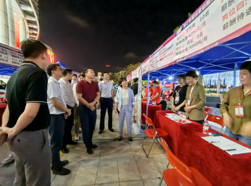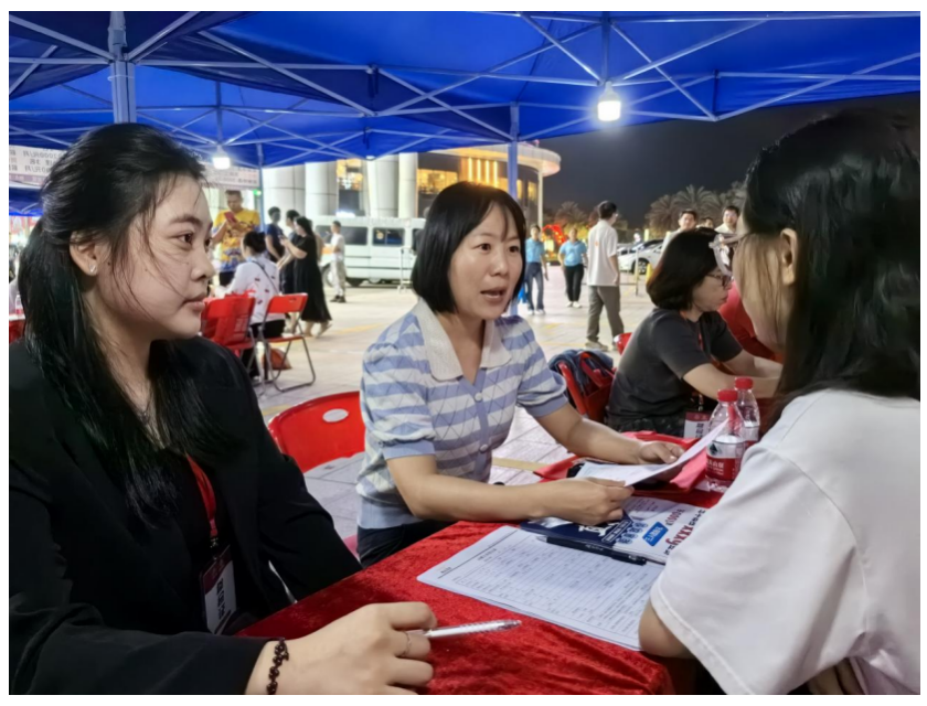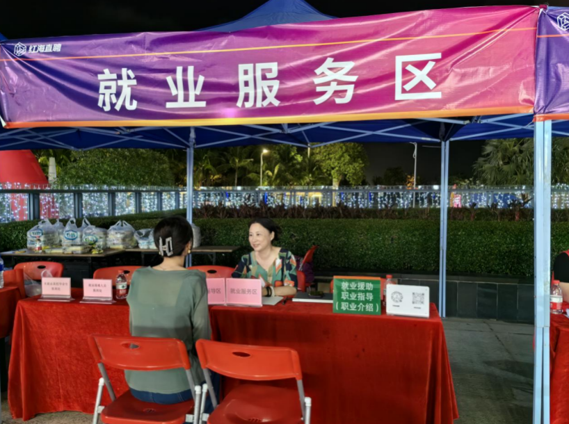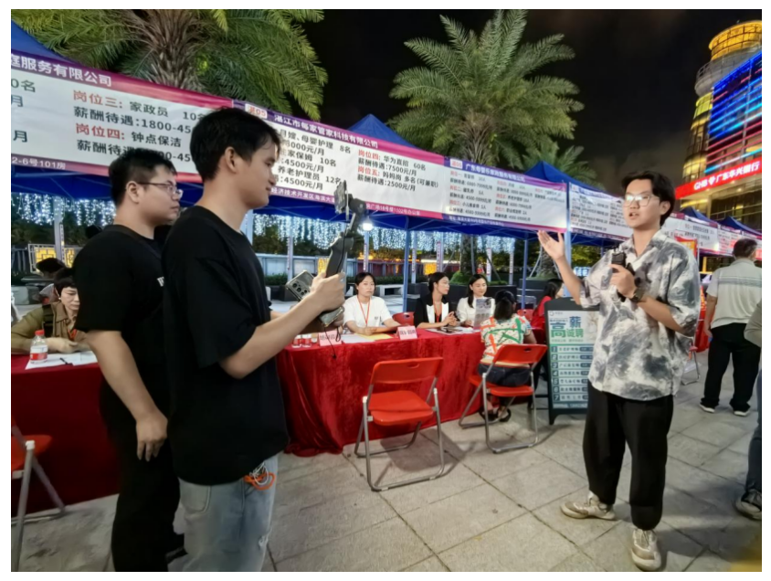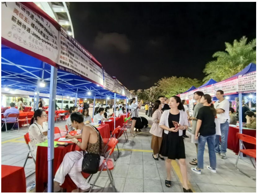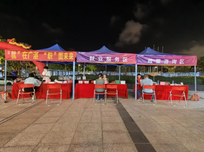 11月3日晚,2023年赤坎區(qū)“金秋招聘月”夜市專場招聘會(huì)在赤坎區(qū)金沙灣廣場舉行,采取線上直播帶崗,結(jié)合線下企業(yè)直招的形式吸引了大量求職者參加。