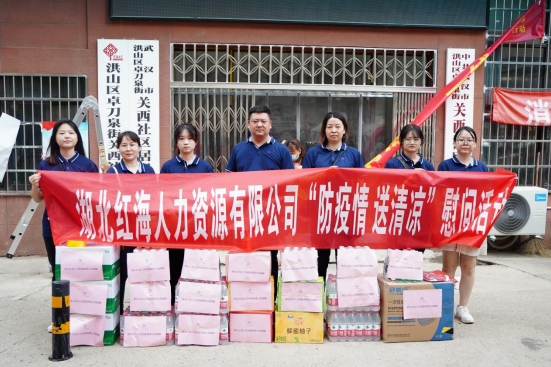 8月17日,為助力社區(qū)疫情防控,湖北紅海協(xié)同洪山區(qū)工商聯(lián)和卓刀泉街道組織開展了慰問活動(dòng),總經(jīng)理饒將將帶領(lǐng)公司人事總監(jiān)毛宏靜、財(cái)務(wù)經(jīng)理匡花、直聘團(tuán)隊(duì)來到洪山區(qū)關(guān)西社區(qū),慰問高溫季節(jié)堅(jiān)守在創(chuàng)建文明城、疫情防疫等一線崗位的社區(qū)工作人員,捐贈(zèng)“夏日送清涼”物資礦泉水、飲料20件,防疫物資5件。