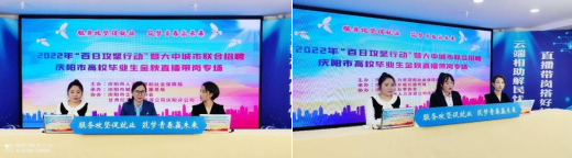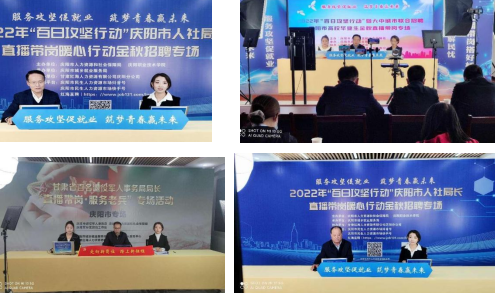 10月28日下午3時,2022年“百日攻堅行動”暨大中城市聯(lián)合招聘慶陽市高校畢業(yè)生金秋直播帶崗專場活動,在慶陽紅海直播間開播,隨著主持人的開場介紹,伴著慶陽市就業(yè)宣傳片,慶陽市人社局黨組成員、副局長許曉遠進入直播間,向直播間的網(wǎng)友介紹慶陽市人社局、市就業(yè)局關(guān)于2022年推動高校畢業(yè)生暨青年群體就業(yè)“百日攻堅行動”的七大舉措,有力推動企業(yè)推出優(yōu)質(zhì)崗位吸納就業(yè),廣大未就業(yè)的大學(xué)生通過直播快速對接應(yīng)聘入職。當(dāng)日,有14位企業(yè)代表依次進入直播間介紹企業(yè)、發(fā)布崗位需求信息。市人社局、市就業(yè)局相關(guān)領(lǐng)導(dǎo)親臨直播現(xiàn)場進行觀摩指導(dǎo)。