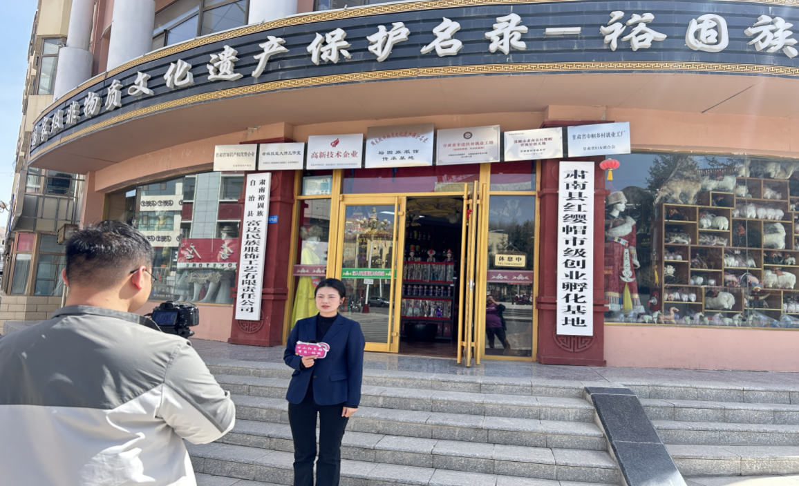 活動期間,直播探訪團隊深入多家民營企業(yè),其中不乏極具民族特色的企業(yè)。在裕固族非物質(zhì)文化遺產(chǎn)保護名錄相關(guān)企業(yè) —— 肅南裕固族富達民族服飾工藝有限責(zé)任公司,探訪團隊實地參觀了民族服飾展示區(qū),了解裕固族服飾的精湛工藝與文化傳承。企業(yè)負責(zé)人介紹,通過創(chuàng)新融合民族文化與現(xiàn)代設(shè)計,不僅讓傳統(tǒng)技藝煥發(fā)新生,更創(chuàng)造了多樣化的就業(yè)崗位,從手工藝制作到市場營銷,吸引了不同技能背景的求職者。