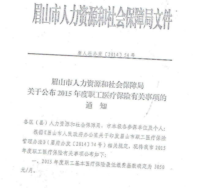 關(guān)于公布2015年職工醫(yī)療保險有關(guān)事項的通知