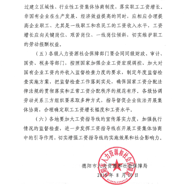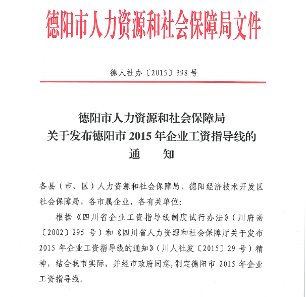 關(guān)于德陽市2015年企業(yè)工資指導(dǎo)線的通知