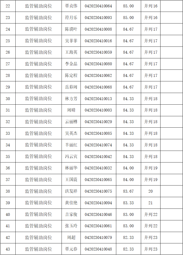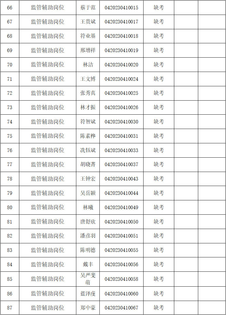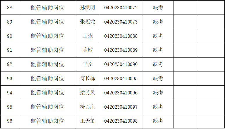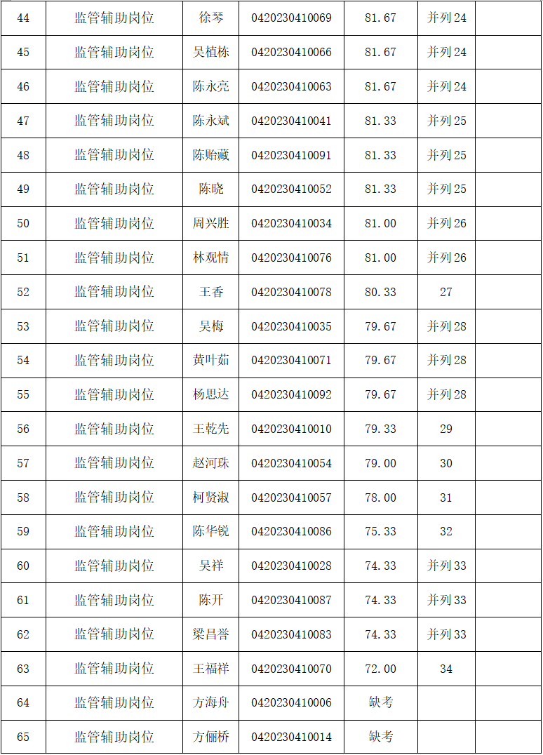 四、??诿捞m機場海關監(jiān)管輔助崗位協(xié)管員面試成績表