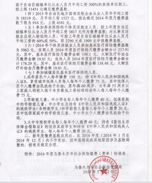 關(guān)于2014年度社會(huì)保險(xiǎn)繳費(fèi)基數(shù)和費(fèi)率的通知