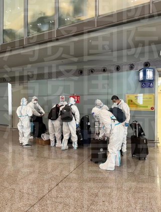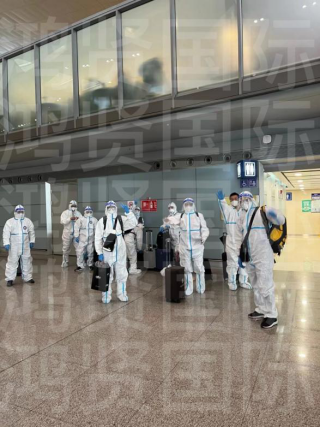 這是員工上飛機(jī)前防疫準(zhǔn)備以及合影 地點(diǎn):孟加拉國(guó)