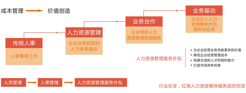 外包,是紅海專業(yè)人力資源管理能力的展現(xiàn),是勞務派遣服務基礎(chǔ)上的升級產(chǎn)品,已成為紅海創(chuàng)造性的服務領(lǐng)域,通過購買紅海崗位外包服務,企業(yè)不僅省力,更加省心。