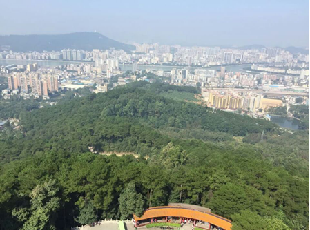 早八點,一行中、青、小三代人在森林公園門口集合。成天坐在辦公室里,殊不知初秋的韶關(guān)也已透著微涼。看著樹林間散落著的星點晨光,周邊或有嬉笑打鬧的孩子們,在你追我趕;或有你儂我儂的情侶,牽著手訴著情話;或有互相攙扶的老翁老嫗,不說話卻相視而笑莫逆于心的默契……在領(lǐng)導簡短卻富有激情的號召下,我們?nèi)齼蓛?、有說有笑地開始向韶陽樓頂前進。